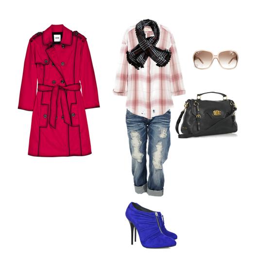 Trench coat + blusa de caveira com fundo xadrez + colar franja de correntes + cachecol + calça boyfrend + ankle boot + maxi bolsa + óculos e é claro + CARÃO!!! Sem carão nenhum look é ooo look!! Hahahahahaha!!